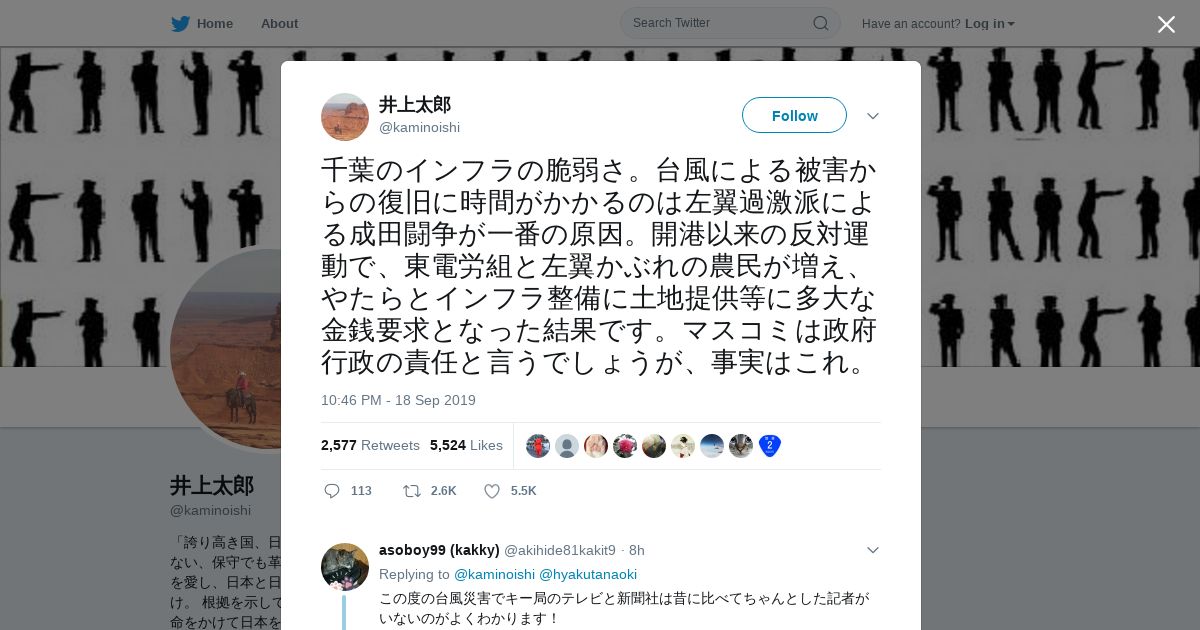 取得元URL: https://twitter.com:443/kaminoishi/status/1174560477763948544