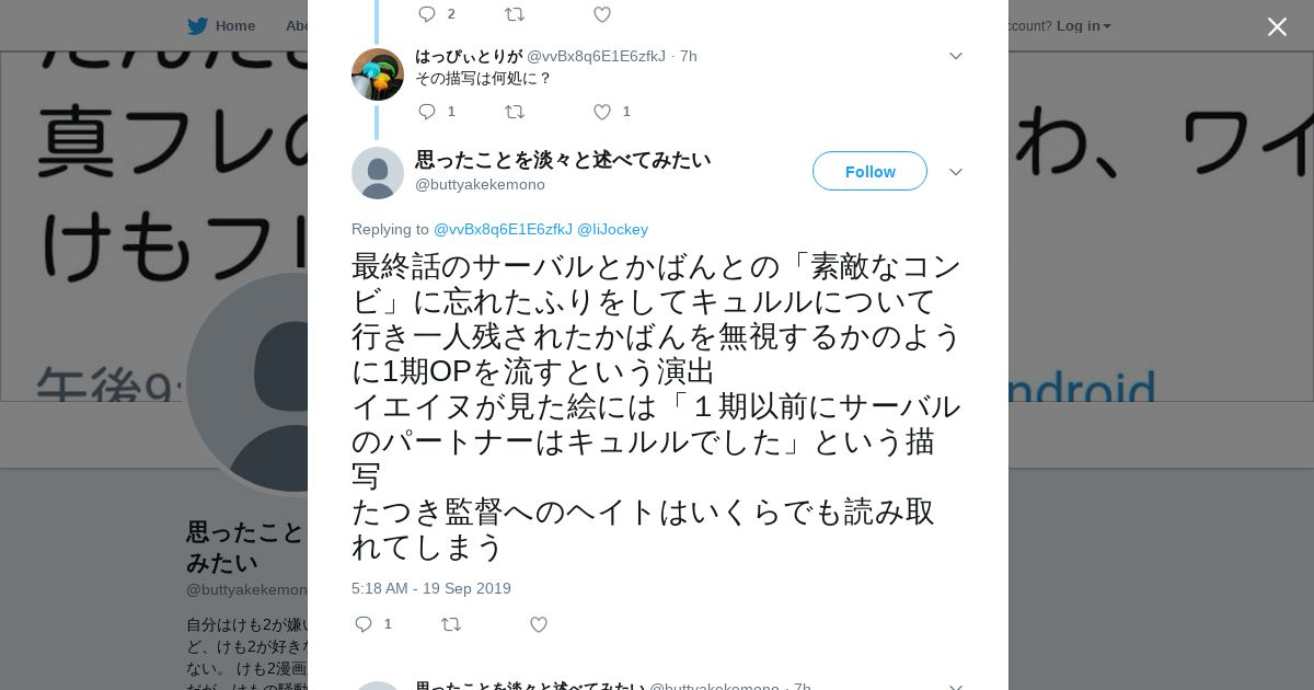 https://twitter.com:443/buttyakekemono/status/1174659084735270918