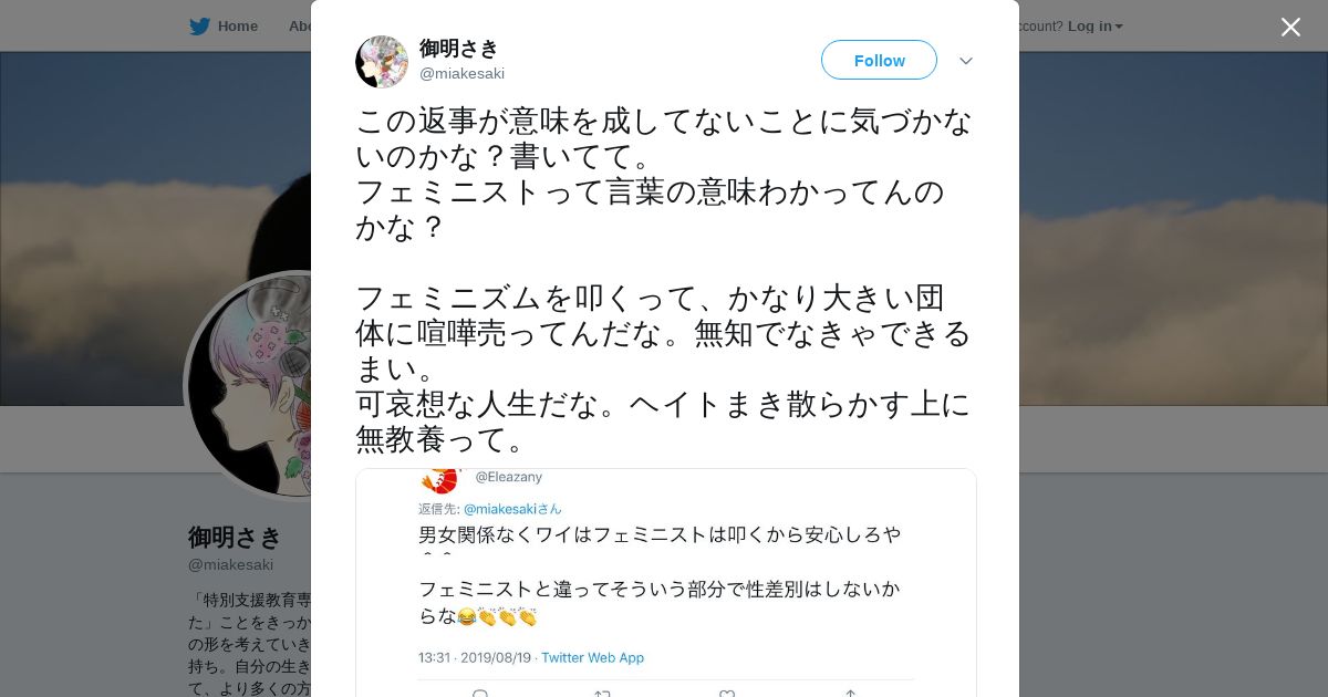 取得元URL: https://twitter.com:443/miakesaki/status/1163311975419400192
