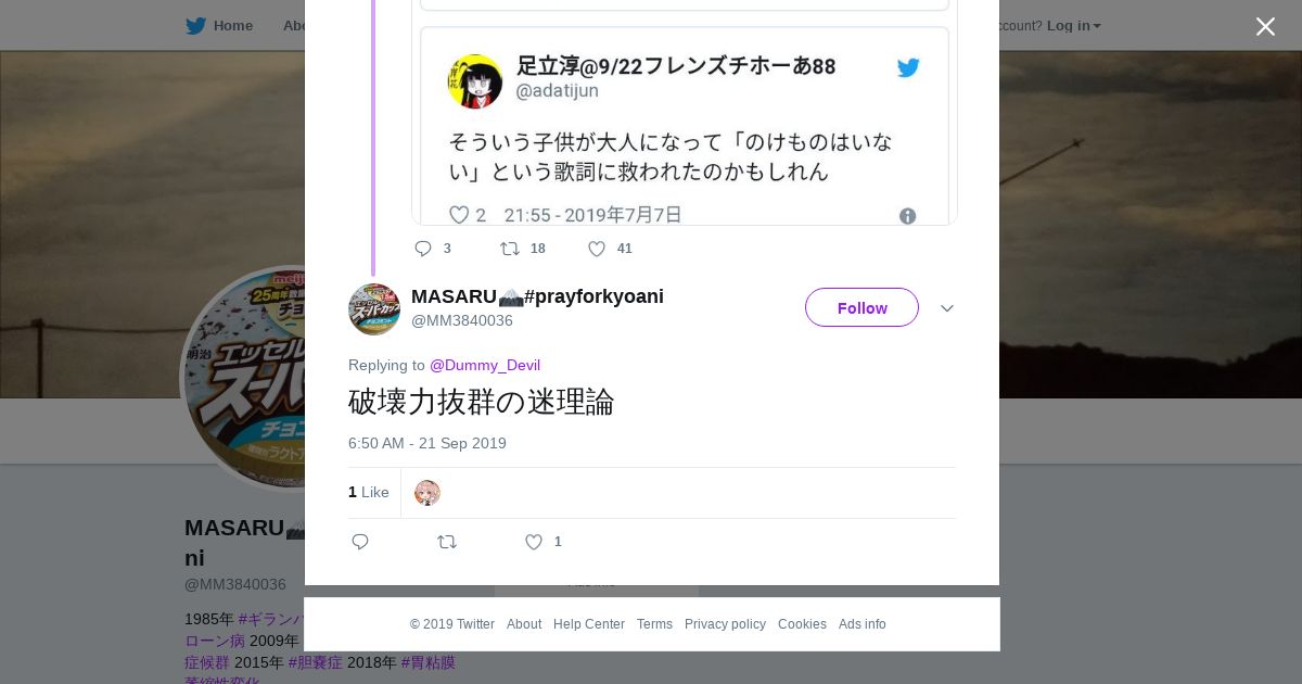 取得元URL: https://twitter.com:443/MM3840036/status/1175406914055786497