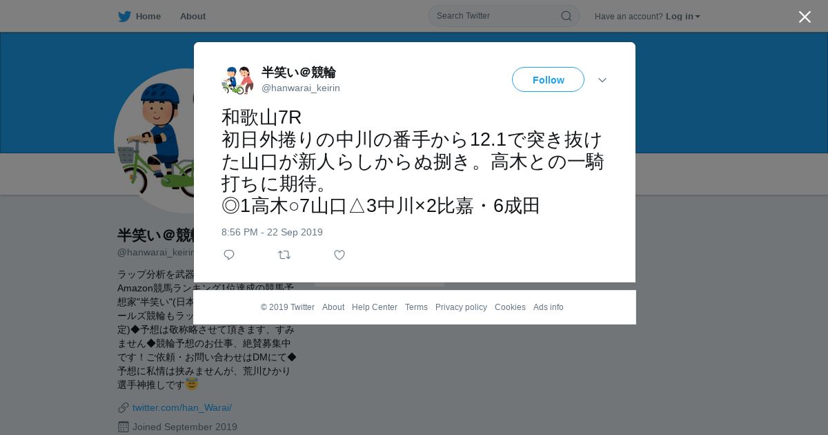 https://twitter.com:443/hanwarai_keirin/status/1175982192188485632