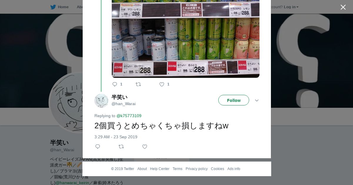 取得元URL: https://twitter.com:443/han_Warai/status/1176081044908339200