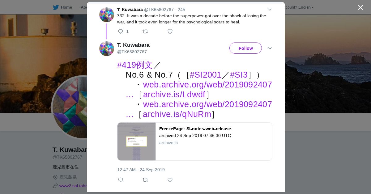 取得元URL: https://twitter.com:443/TK65802767/status/1176402687480365056