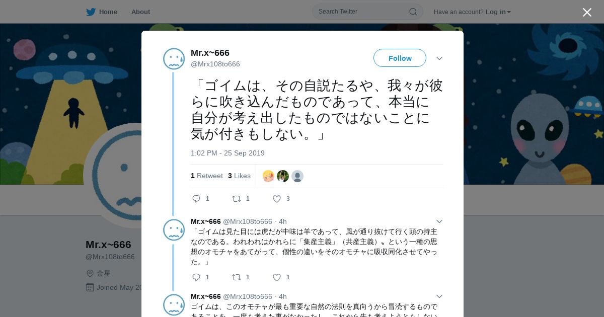 https://twitter.com:443/Mrx108to666/status/1176950234598952960