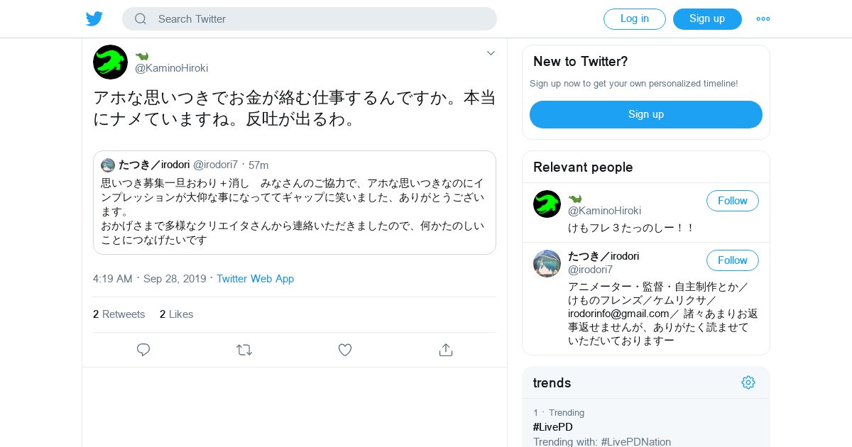 取得元URL: https://twitter.com:443/KaminoHiroki/status/1177800058479104000?s=21