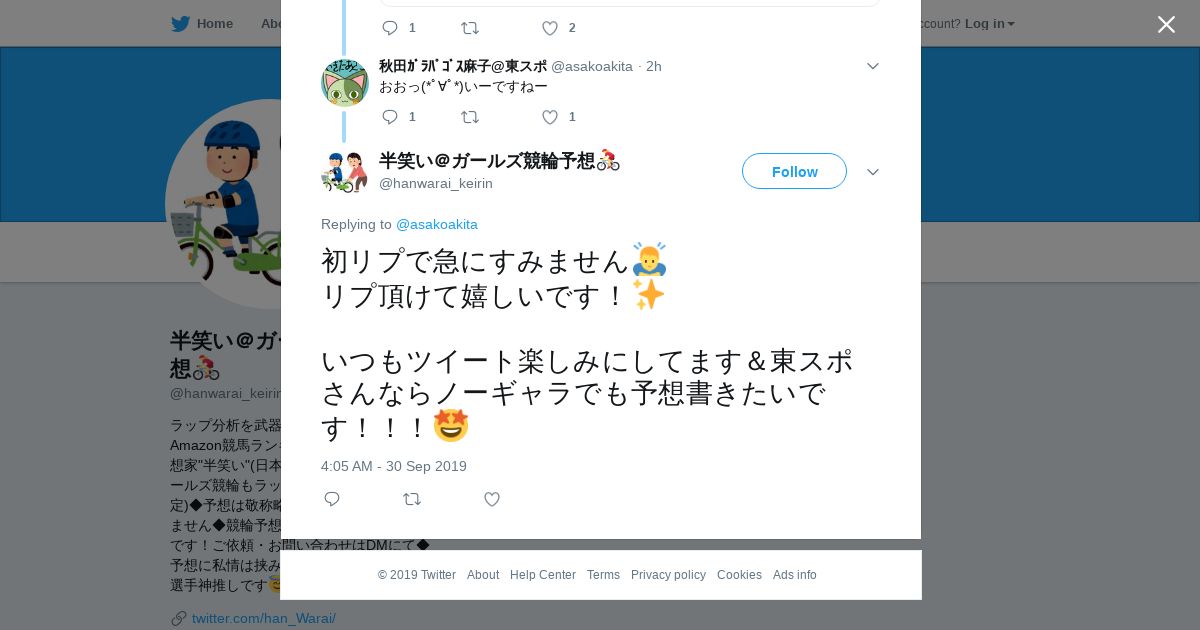 https://twitter.com:443/hanwarai_keirin/status/1178627034936827905