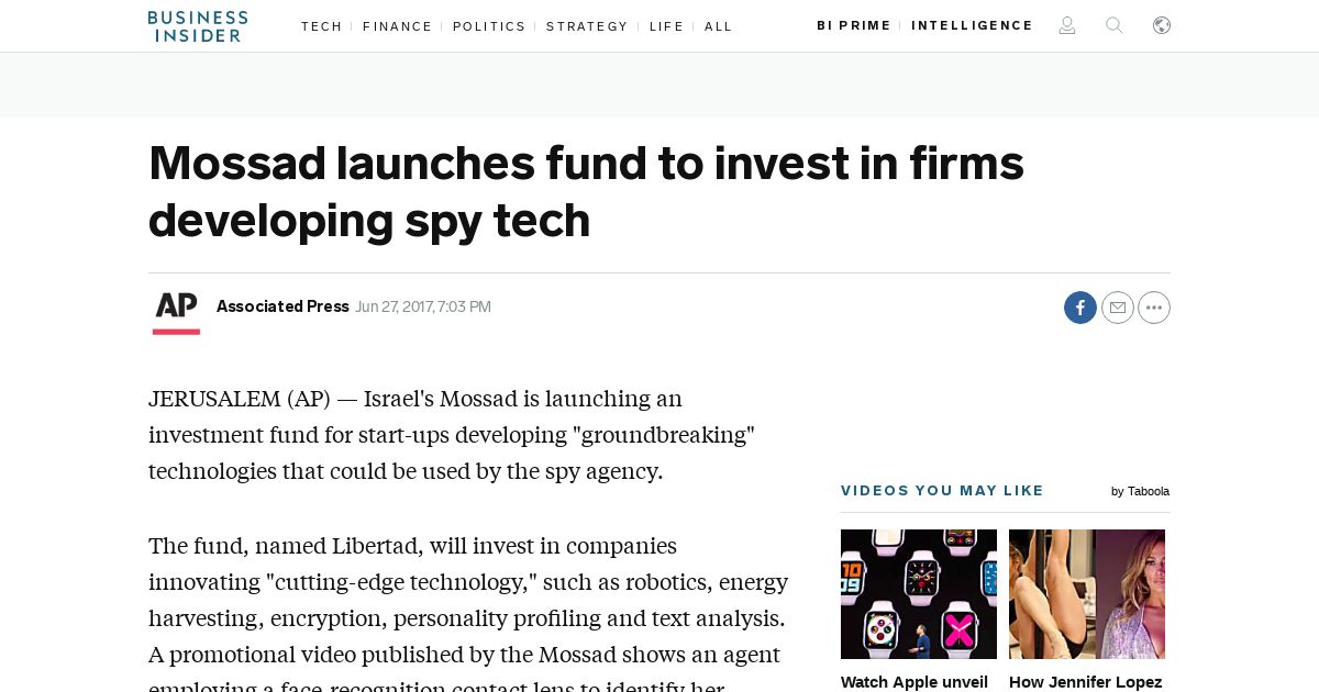 https://www.businessinsider.com:443/ap-mossad-launches-fund-to-invest-in-firms-developing-spy-tech-2017-6?utm_source=reddit.com