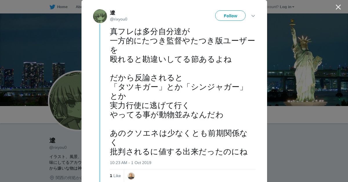 取得元URL: https://twitter.com:443/rixyou0/status/1179084406364893184