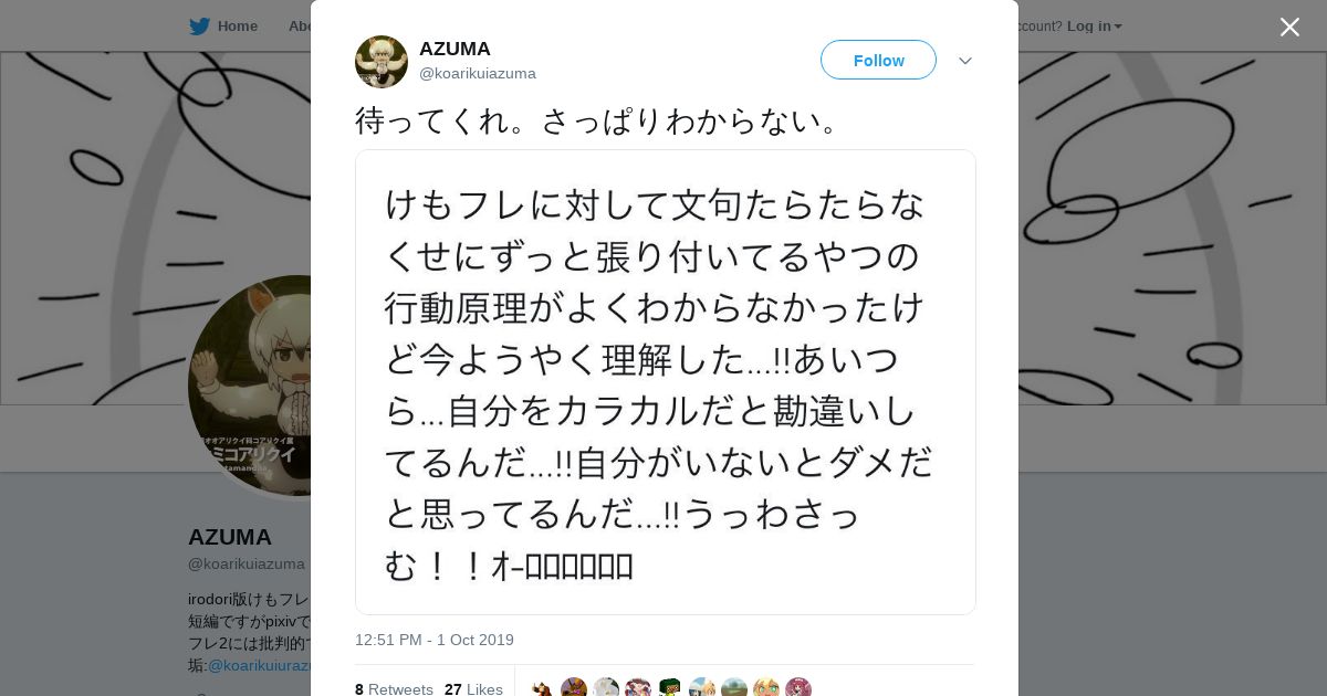 取得元URL: https://twitter.com:443/koarikuiazuma/status/1179121735477559297