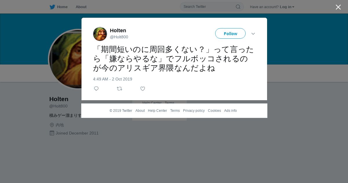 取得元URL: https://twitter.com:443/Holt800/status/1179362724251389952