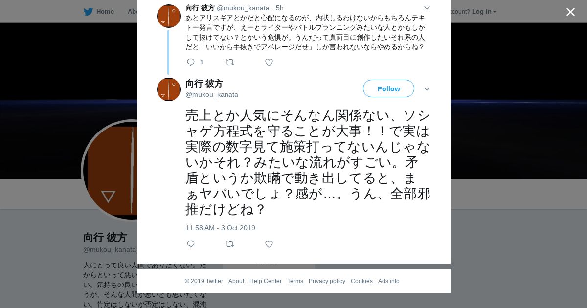 取得元URL: https://twitter.com:443/mukou_kanata/status/1179833091403051009