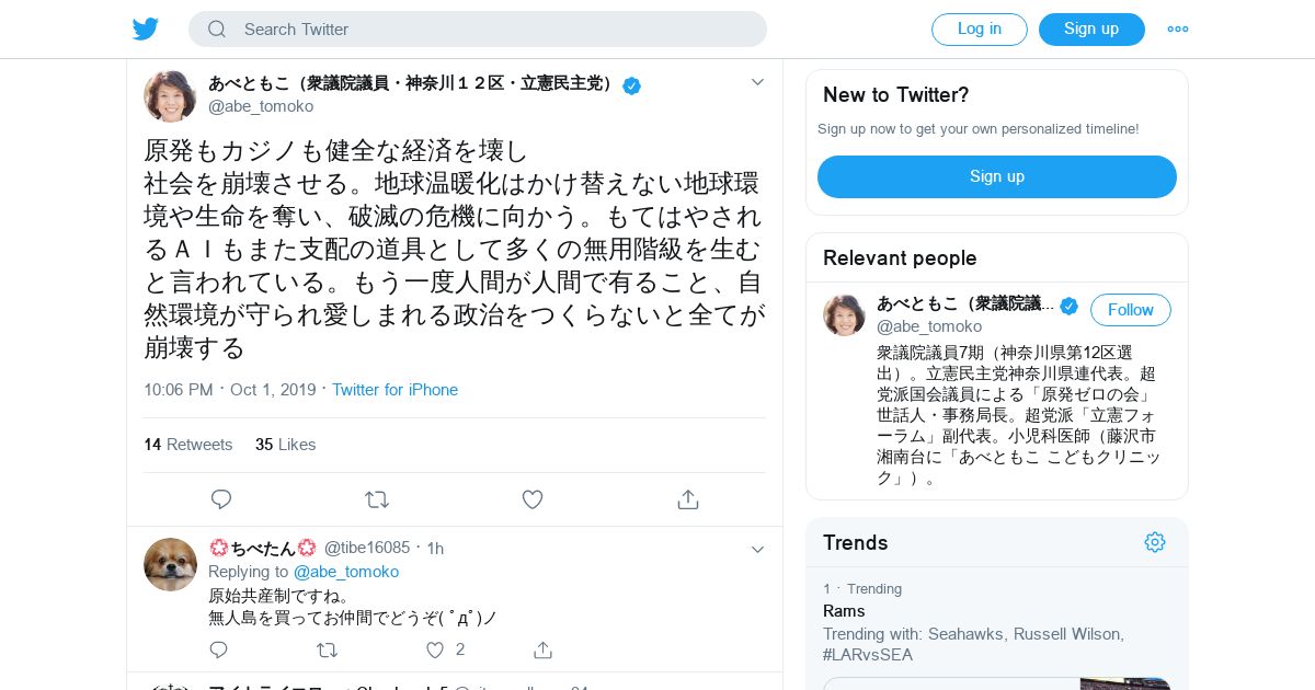 https://twitter.com:443/abe_tomoko/status/1179155772971765760