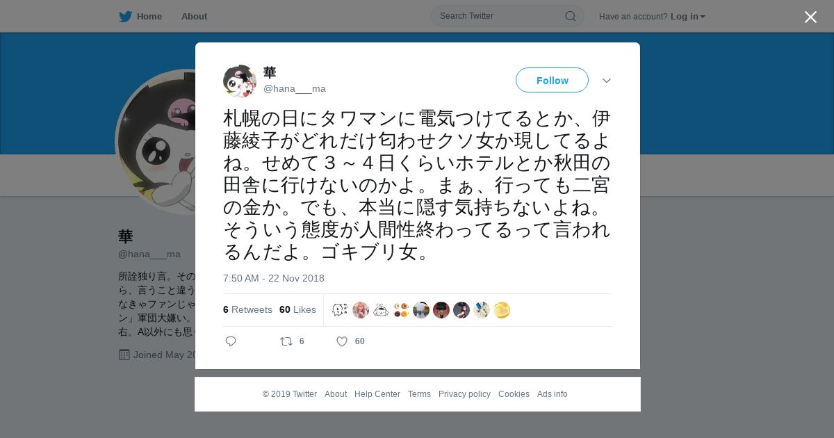 取得元URL: https://twitter.com:443/hana___ma/status/1065633607031484416
