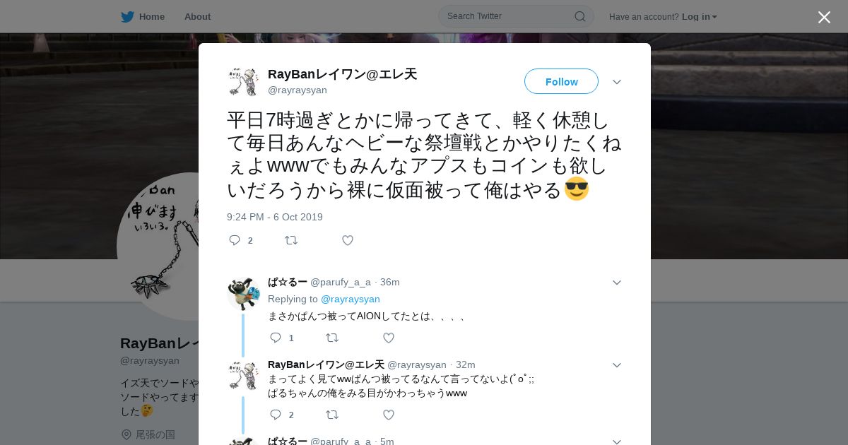 取得元URL: https://twitter.com:443/rayraysyan/status/1181062744503570433