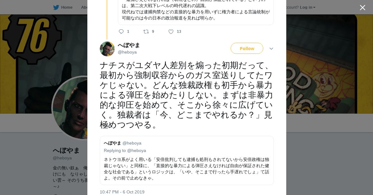 取得元URL: https://twitter.com:443/heboya/status/1181083579180175360