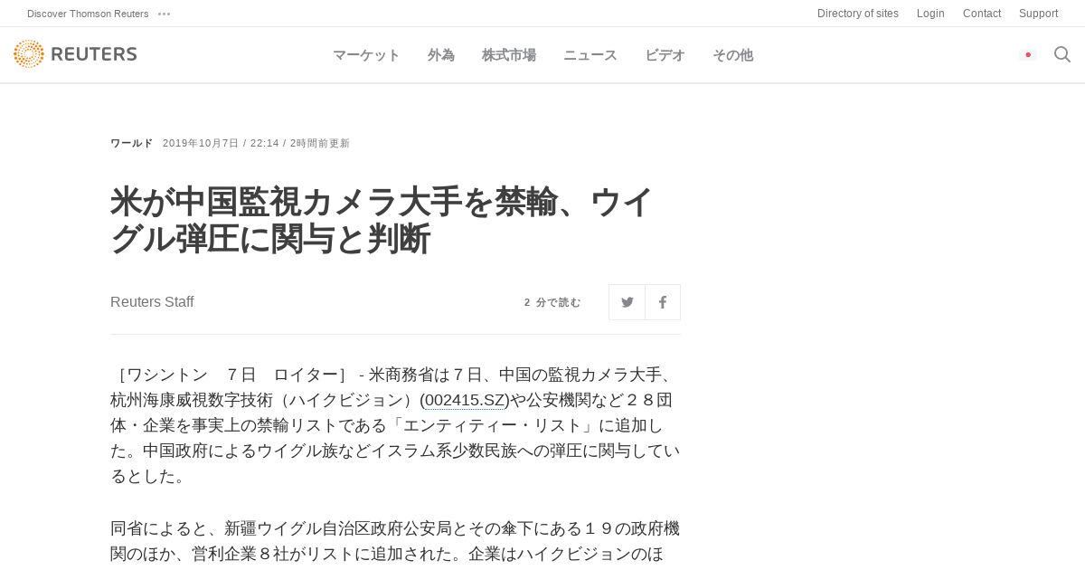 https://jp.reuters.com:443/article/usa-trade-china-hikvision-idJPKBN1WM2B6