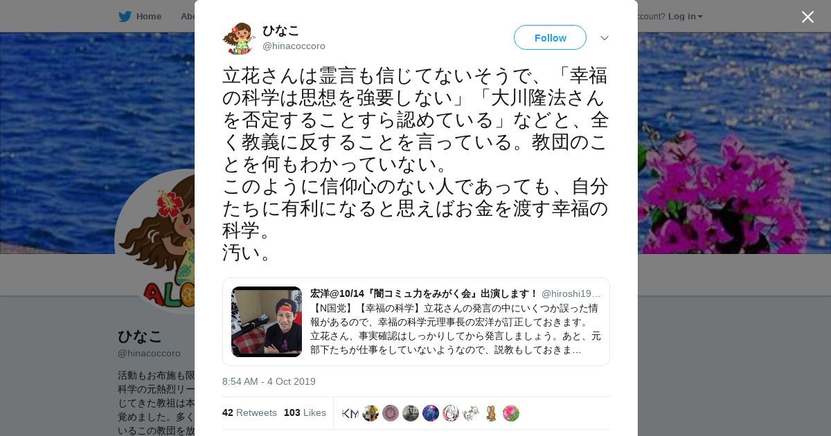 取得元URL: https://twitter.com:443/hinacoccoro/status/1180149263591829505