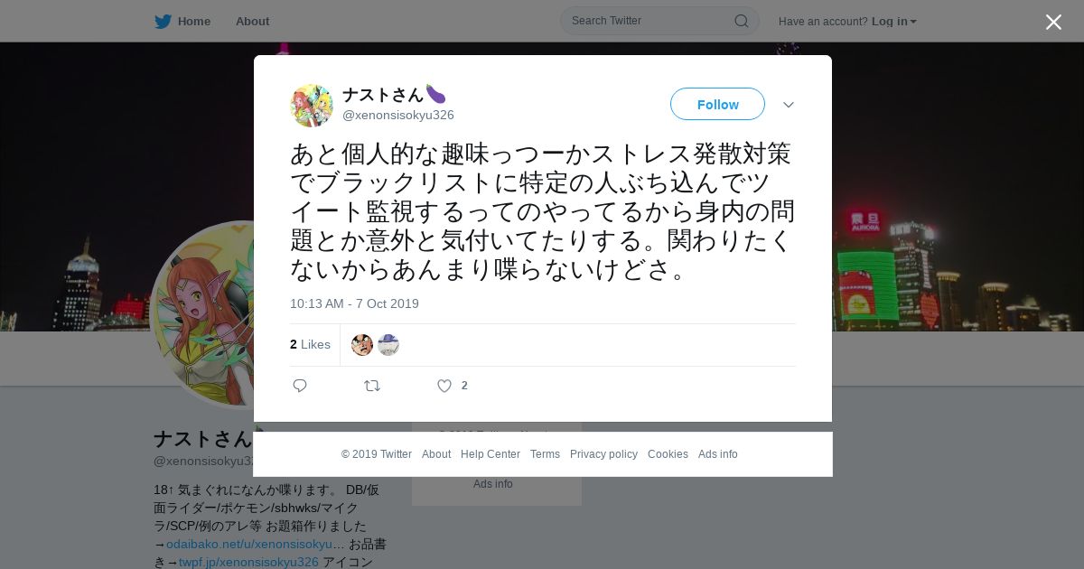 取得元URL: https://twitter.com:443/xenonsisokyu326/status/1181256212383272960