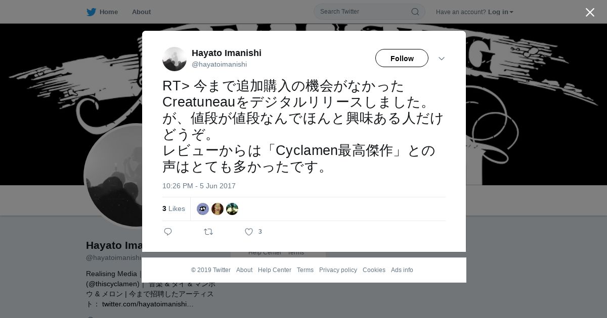 取得元URL: https://twitter.com:443/hayatoimanishi/status/871961370455101440