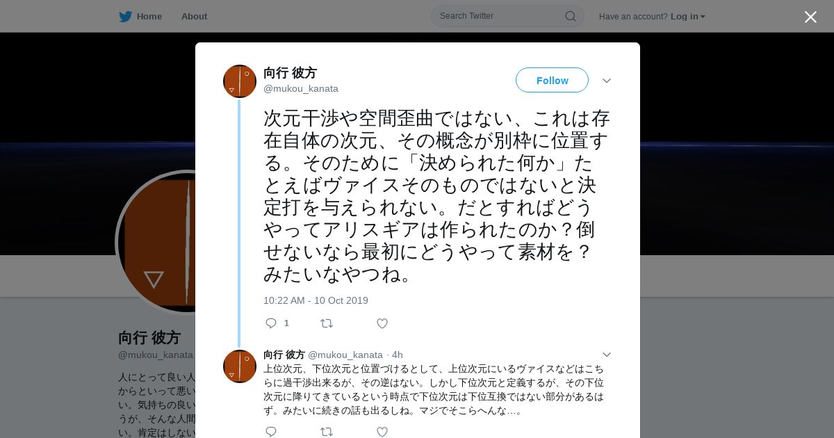 取得元URL: https://twitter.com:443/mukou_kanata/status/1182345714770165760