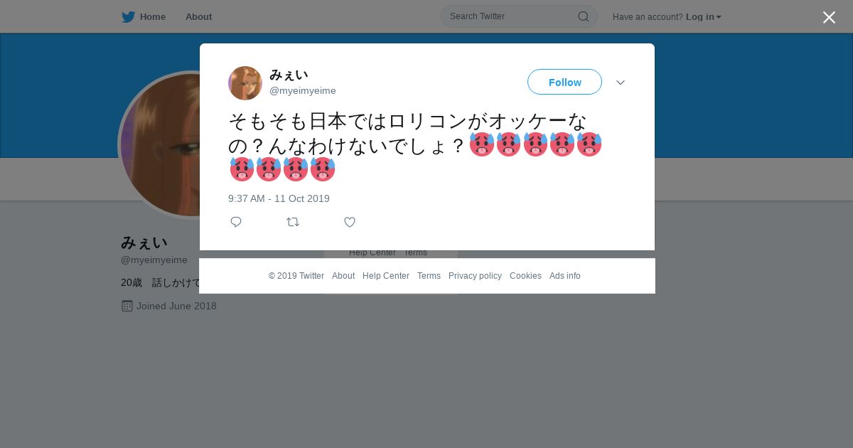 取得元URL: https://twitter.com:443/myeimyeime/status/1182696805437333505