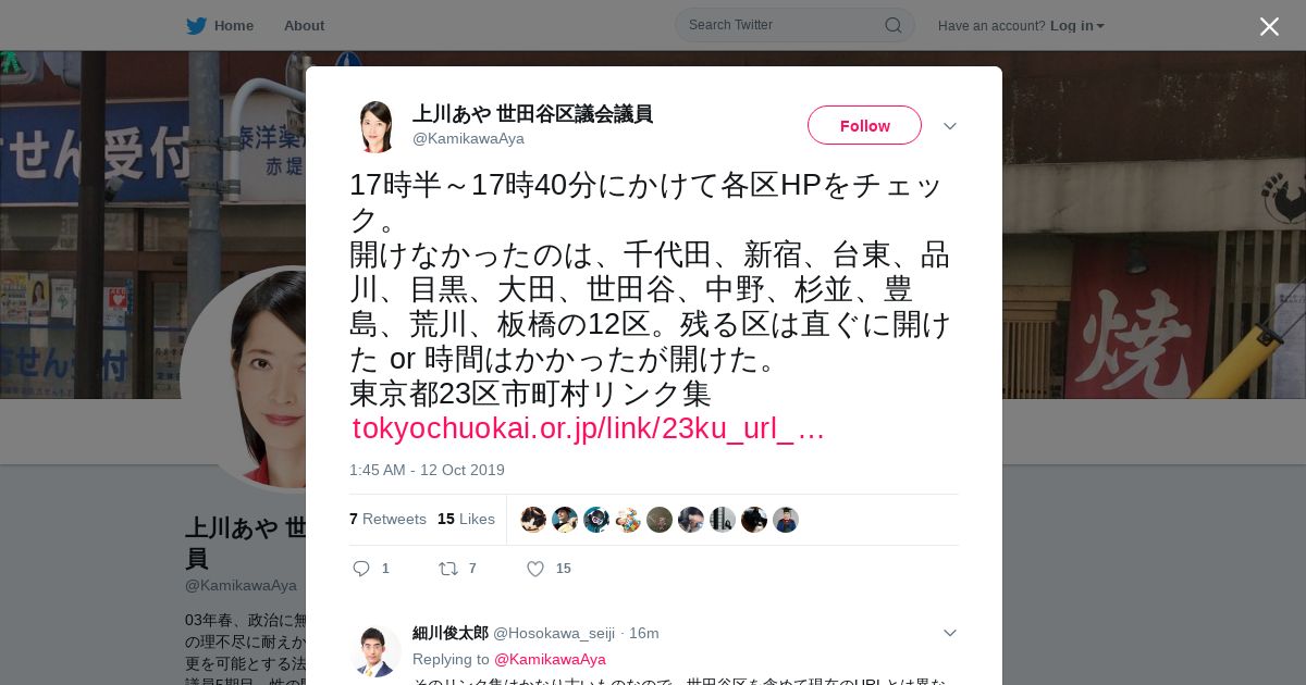 取得元URL: https://twitter.com:443/KamikawaAya/status/1182940409267245057