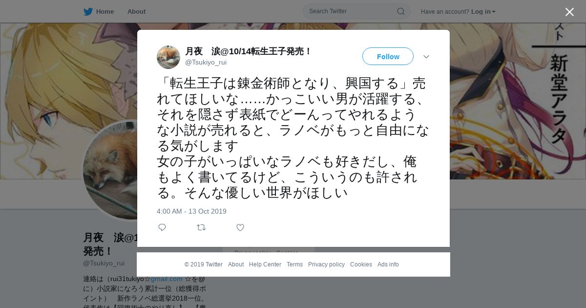 取得元URL: https://twitter.com:443/Tsukiyo_rui/status/1183336823331774465