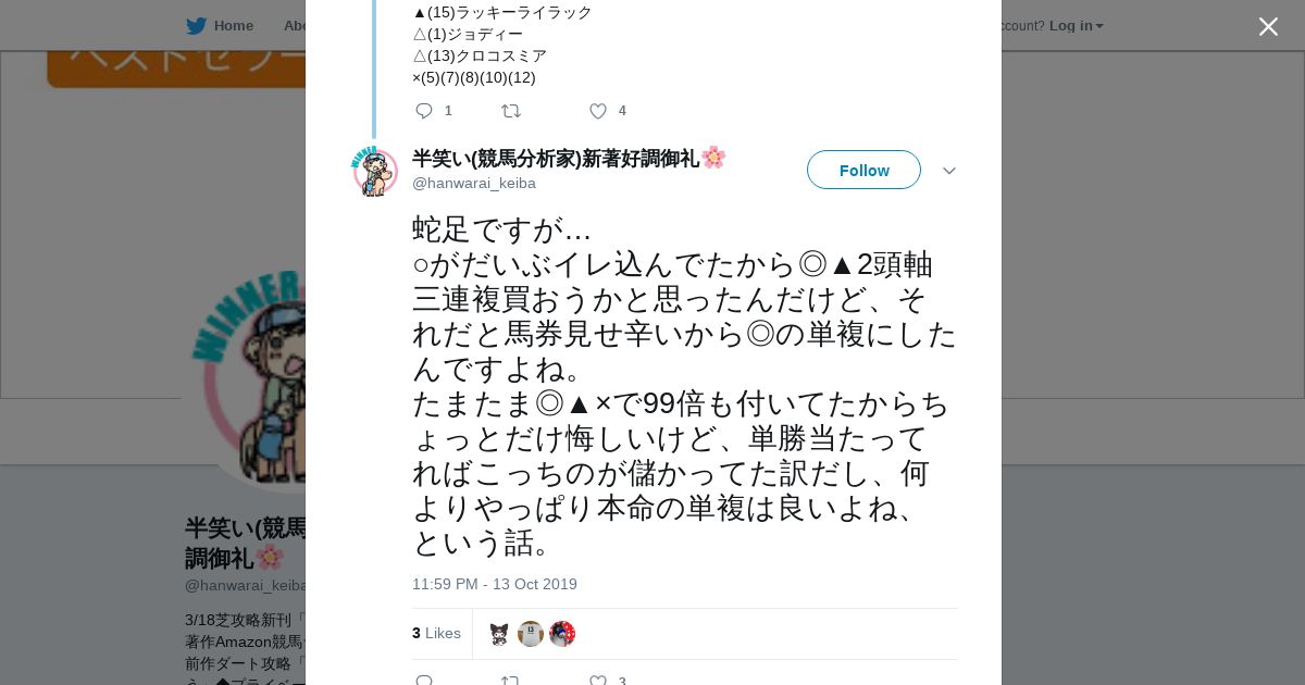 https://twitter.com:443/hanwarai_keiba/status/1183638470540972032