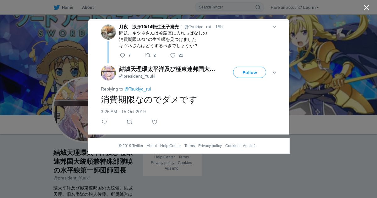 取得元URL: https://twitter.com:443/president_Yuuki/status/1184053042569547776