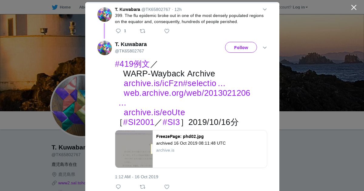 取得元URL: https://twitter.com:443/TK65802767/status/1184381541805223936