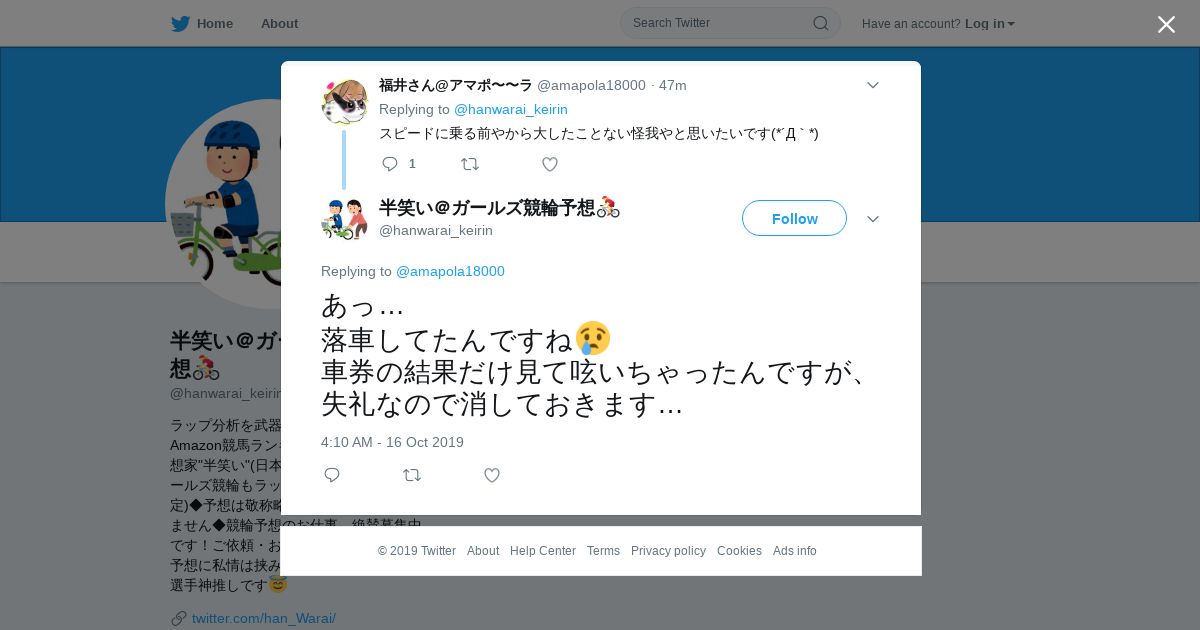 https://twitter.com:443/hanwarai_keirin/status/1184426425408901120