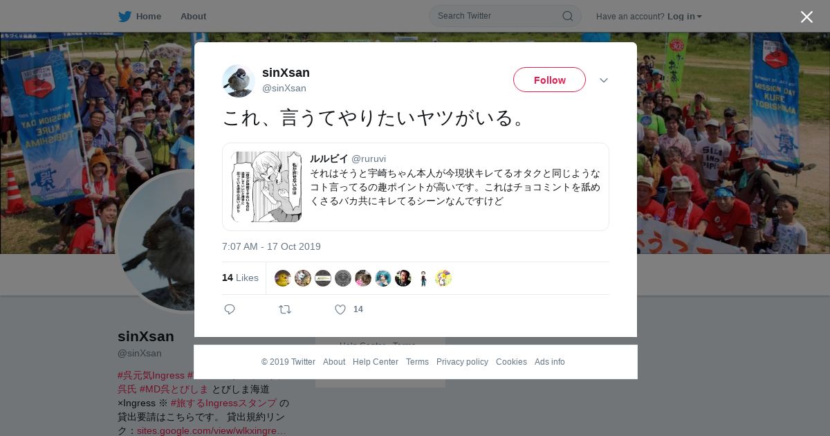 取得元URL: https://twitter.com:443/sinXsan/status/1184833205695733760