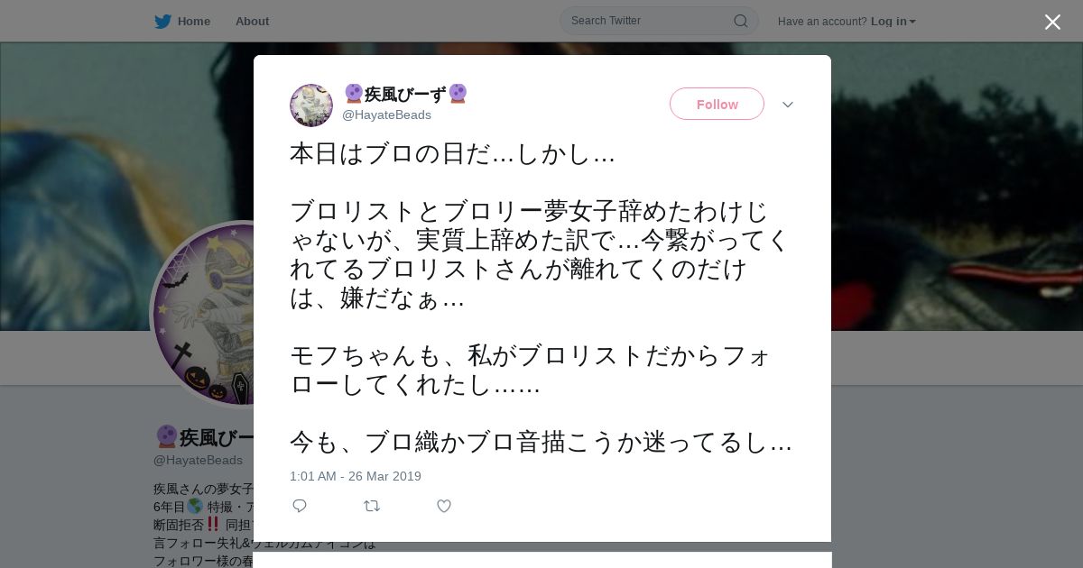 取得元URL: https://twitter.com:443/HayateBeads/status/1110451648986406913
