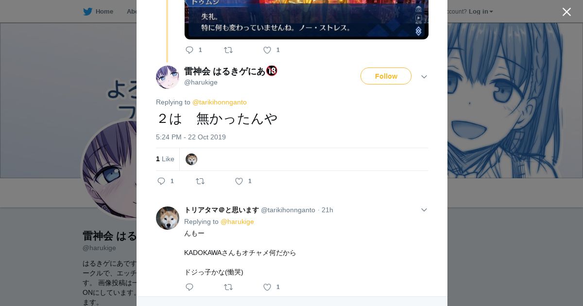 取得元URL: https://twitter.com:443/harukige/status/1186800429260099584