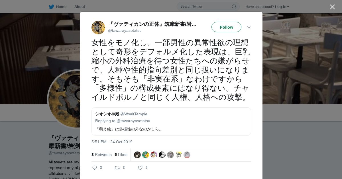 取得元URL: https://twitter.com:443/tawarayasotatsu/status/1187532068130975749