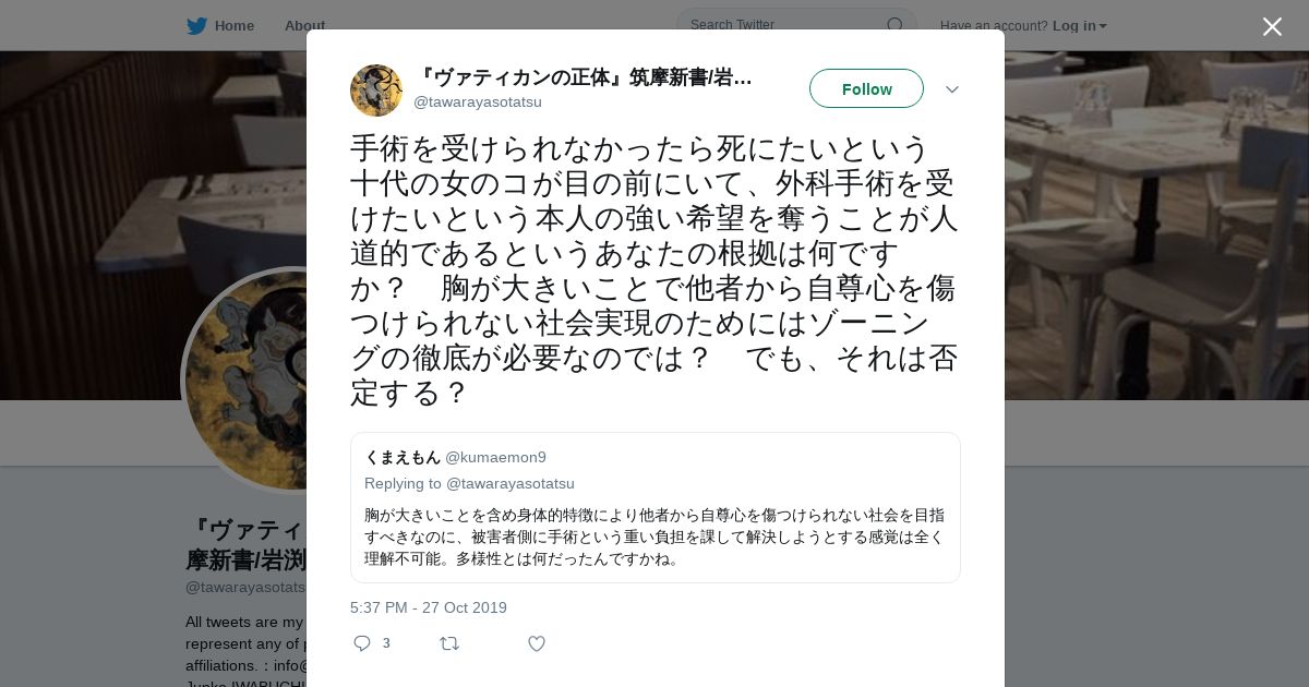 取得元URL: https://twitter.com:443/tawarayasotatsu/status/1188615695392620544