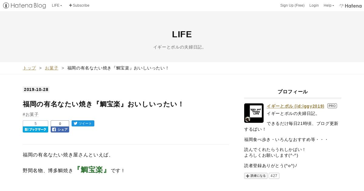 https://iggy.hateblo.jp:443/entry/2019/10/28/%E7%A6%8F%E5%B2%A1%E3%81%AE%E6%9C%89%E5%90%8D%E3%81%AA%E3%81%9F%E3%81%84%E7%84%BC%E3%81%8D%E3%80%8E%E9%AF%9B%E5%AE%9D%E6%A5%BD%E3%80%8F%E3%81%8A%E3%81%84%E3%81%97%E3%81%84%E3%81%A3%E3%81%9F%E3%81%84%EF%BC%81