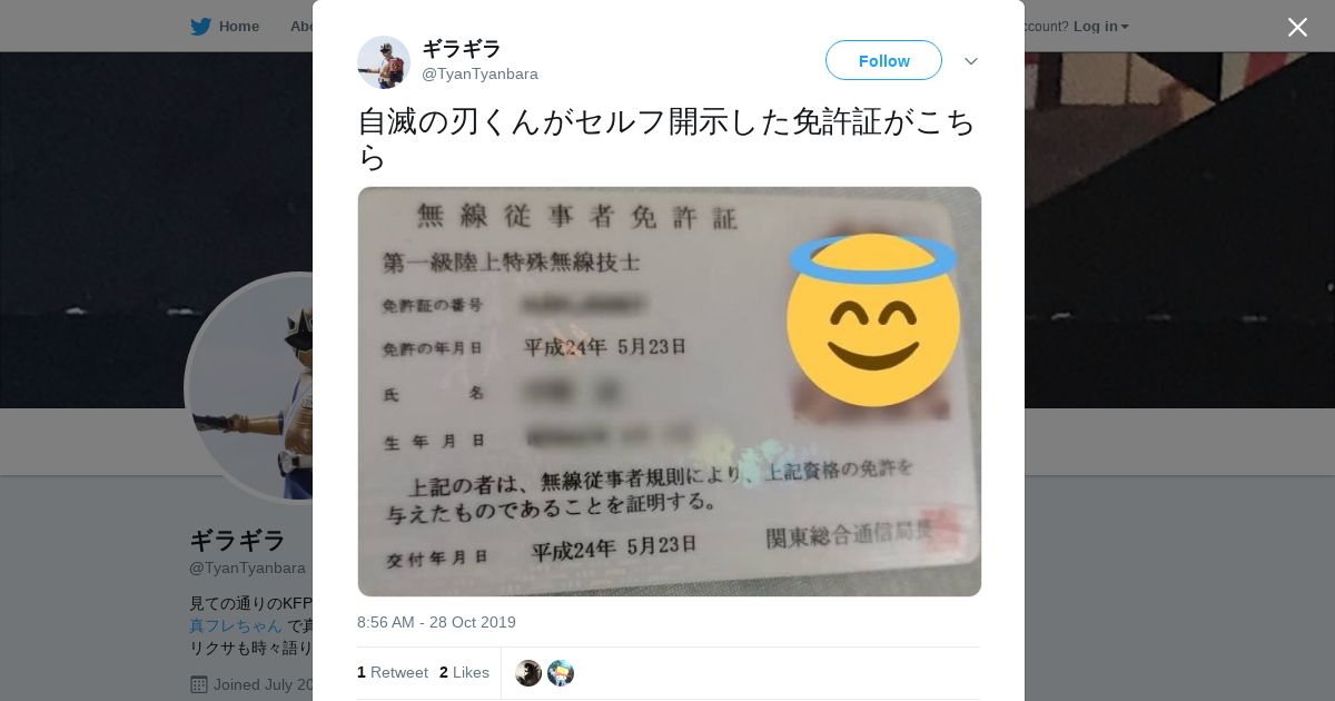 取得元URL: https://twitter.com:443/TyanTyanbara/status/1188847115679612928