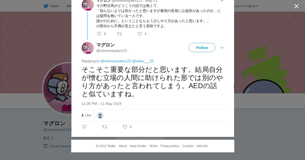 取得元URL: https://twitter.com:443/nisinomiyako123/status/1127454783487352832