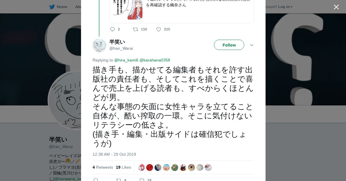 取得元URL: https://twitter.com:443/han_Warai/status/1189084149375651840