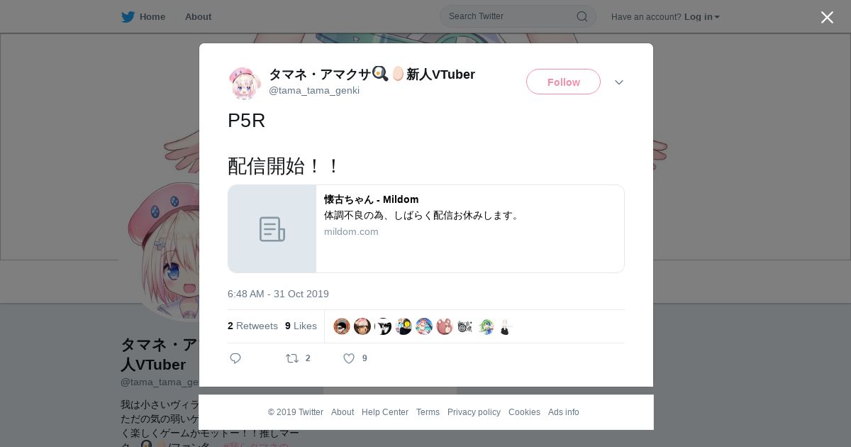 取得元URL: https://twitter.com:443/tama_tama_genki/status/1189901980186972165