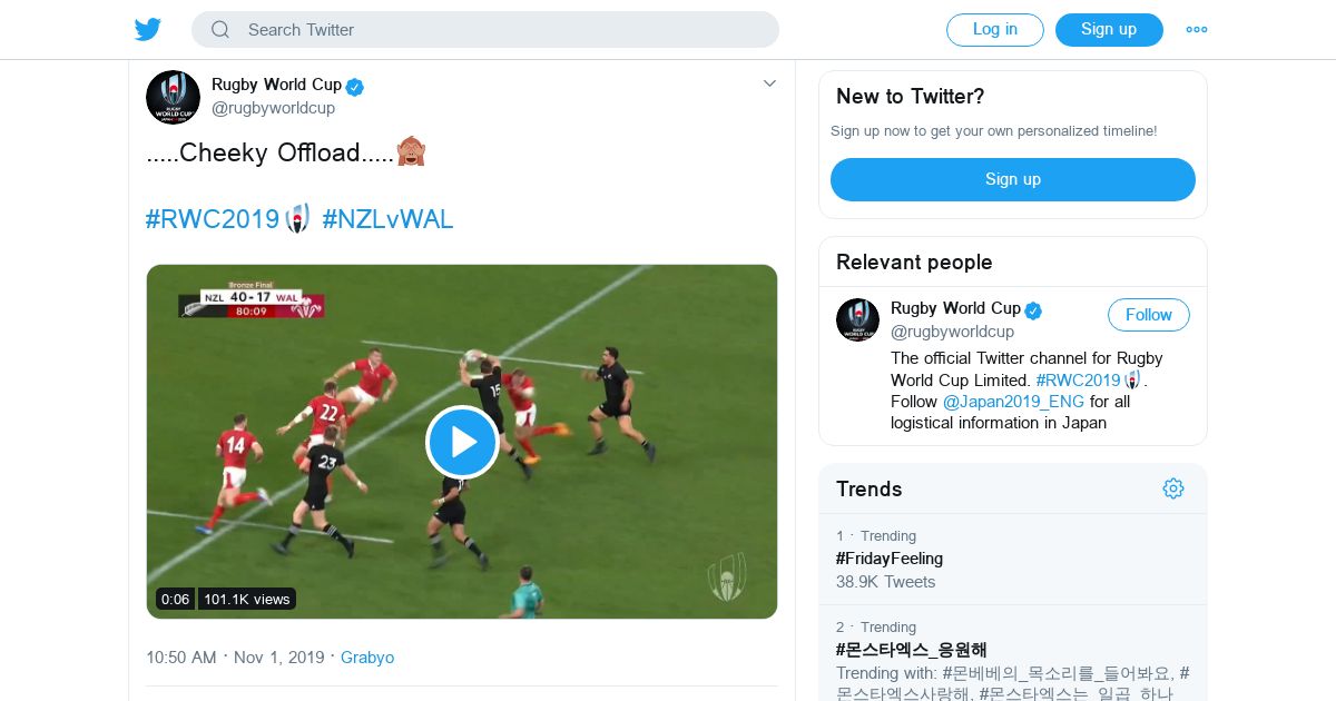取得元URL: https://mobile.twitter.com:443/rugbyworldcup/status/1190219617651904513