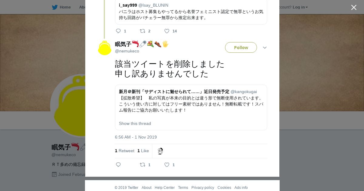https://twitter.com:443/nemukeco/status/1190266368379125760