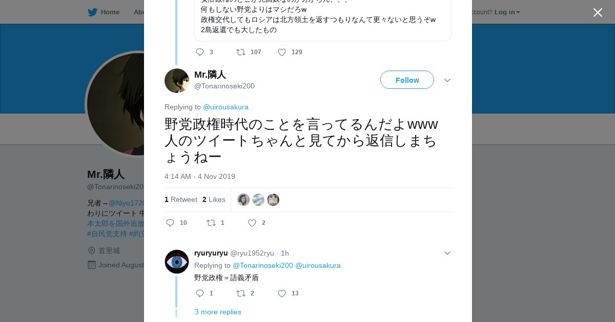 https://twitter.com:443/Tonarinoseki200/status/1191327929189326849