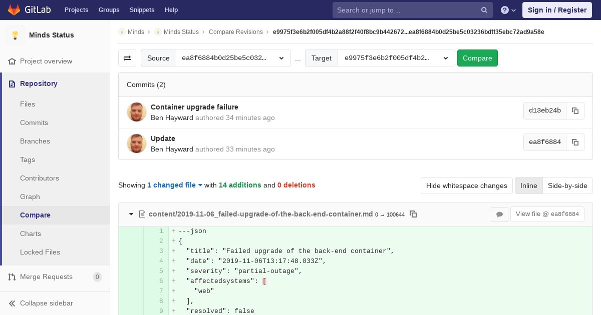 https://gitlab.com:443/minds/status/compare/e9975f3e6b2f005df4b2a88f2f40f8bc9b442672...ea8f6884b0d25be5c03236bdff35ebc72ad9a58e