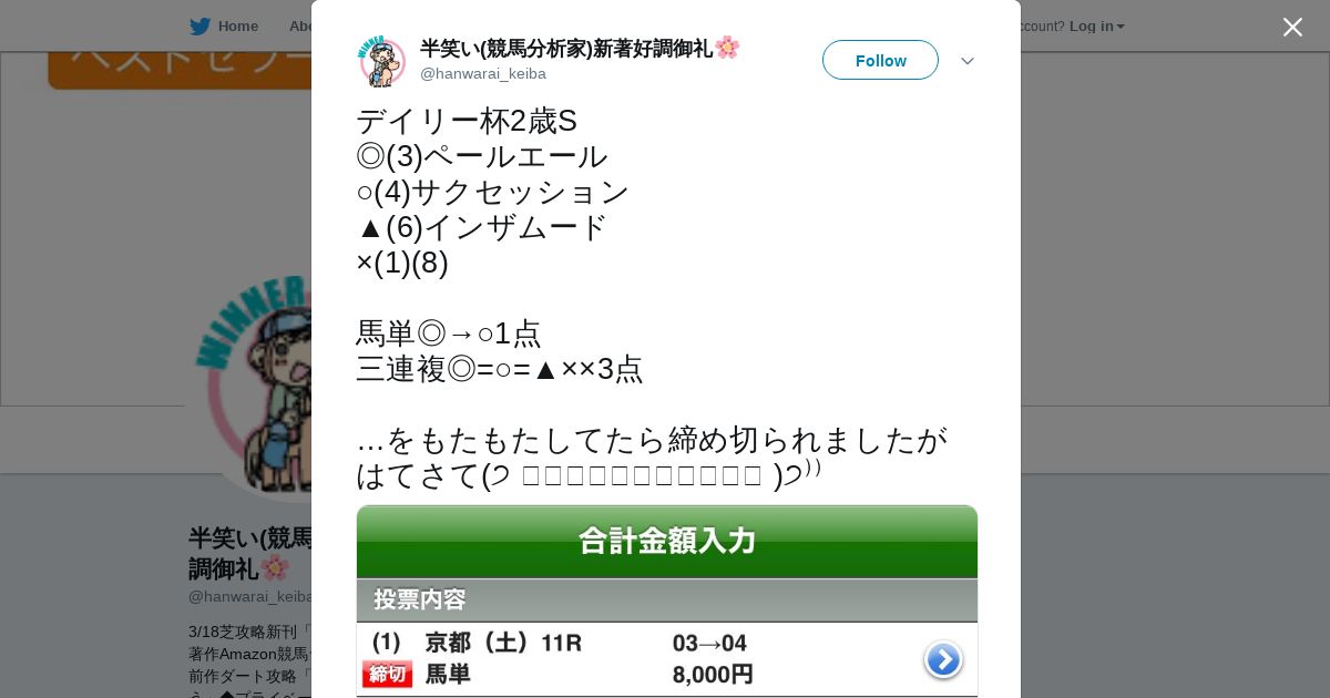 https://twitter.com:443/hanwarai_keiba/status/1193056914466193408
