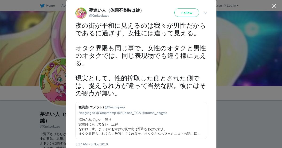 取得元URL: https://twitter.com:443/0mitsukazu/status/1192763016116232195
