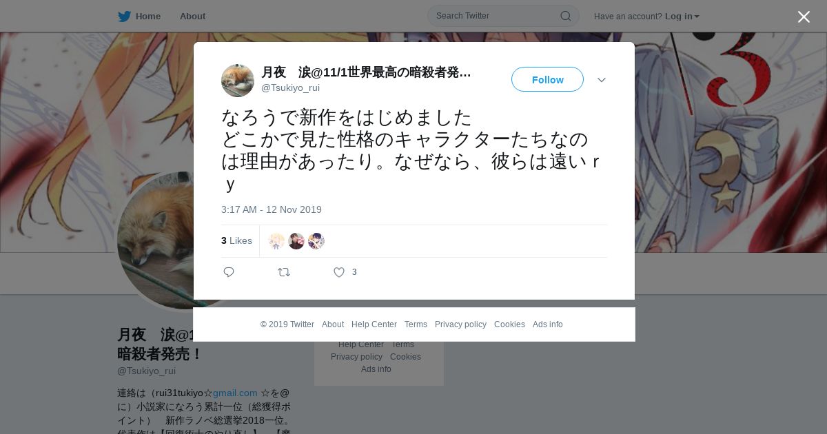 取得元URL: https://twitter.com:443/Tsukiyo_rui/status/1194212650554519554