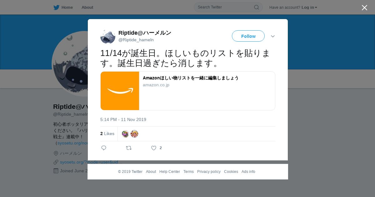 https://twitter.com:443/Riptide_hameln/status/1194060927391285248