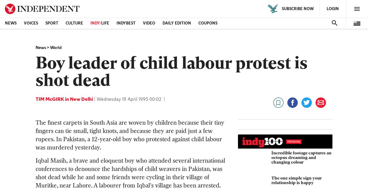 https://www.independent.co.uk:443/news/world/boy-leader-of-child-labour-protest-is-shot-dead-1616194.html